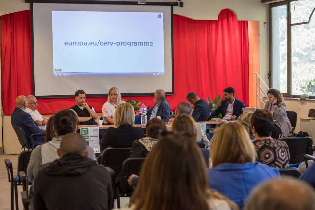 Sono intervenuti il Consigliere regionale Cristian Betti, il Presidente di ANCI Umbria Federico Gori e il rappresentante di AICCRE Umbria Angelo Larocca, che hanno illustrato le opportunità offerte dal programma CERV ed alcune esperienze di gemellaggio a livello regionale. Il dibattito ha permesso di condividere esperienze e incoraggiare nuove collaborazioni tra amministrazioni e comunità locali.